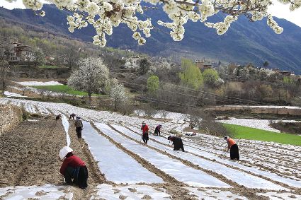 “春耕、夏耘、秋收、冬藏”是大地的“四季歌”。幾場春雨過后,大渡河流域氣溫逐漸回升。時下,穿行于我州 大渡河流域廣袤的山川田野間,到處是一派搶農(nóng)時的忙碌場景。沉寂的田野,開始熱鬧起來。農(nóng)戶們?yōu)榱艘荒甑暮檬粘桑成媳澈t、帶著鋤頭、趕著耕牛,走進阡陌縱橫的田野,鉚足“?!眲艃?,翻土、修剪、澆水、除草,田野間好不熱鬧。一幅忙春耕、勤備耕的“春耕圖”已在甘孜大地徐徐展開。