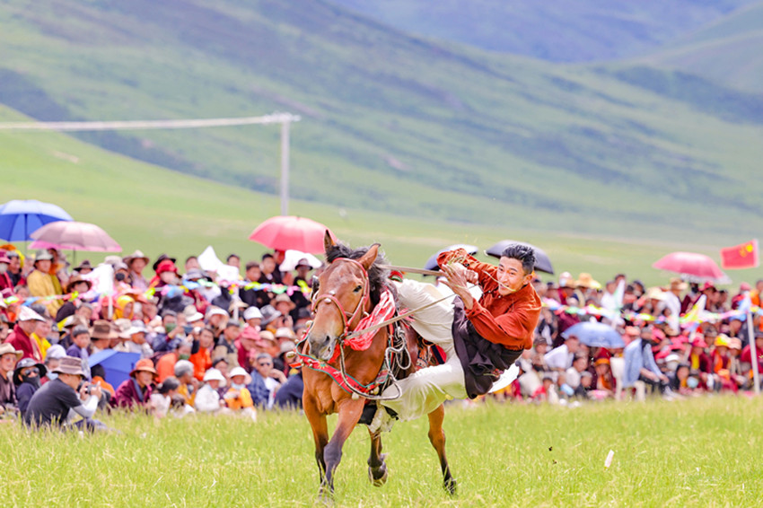 圖為“福地色達 金馬之邀”游牧文化旅游季開幕式表演。