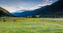 玉科草原位于四川甘孜州道孚縣境內(nèi),距縣城65千米,融藍(lán)天、白云、雪山、林木、草原、溪流為一體,被譽(yù)為“康巴阿勒泰”。