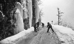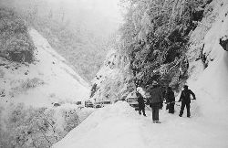一九九七年十一月二十四日,連續(xù)多日大雪,把整個二郎山裹得嚴(yán)嚴(yán)實(shí)實(shí),白茫茫一片。陣陣山風(fēng)吹過,大霧就像瀑布一樣,從山頂直往下翻涌傾瀉。 一大早,州交通局打冰除雪排險的干部職工就從二郎山管理站直奔山埡口。載有防滑砂的大貨車穿迷霧,繞山梁,向山頂埡口疾馳。由于氣溫太低,霧又大,車上的擋風(fēng)玻璃很快就結(jié)下了冰,路面打滑非常嚴(yán)重。前面車輛堵了起來,排險人員只好下車步行。 大霧彌漫,能見度很底,陰霾的天空又飄起了紛紛揚(yáng)揚(yáng)的雪花,剌骨的寒風(fēng)陣陣襲來,只聽見車蓬布在風(fēng)中“嗶剝”作響,卻看不見前面到底堵了多少車。排險人員只好相互攙扶踩著冰滑的邊路艱難地向行。好不容易來到堵在最前面的車子面前。原來是一輛載著原木的東風(fēng)牌大貨車側(cè)滑在公路上,把整個公路堵死了。 局領(lǐng)導(dǎo)當(dāng)即指揮大家用鋼釬、鐵鎬和鋤頭處理冰道,沒有撮箕,大家借來加水桶裝運(yùn)冰雪……氣溫仍在急劇下降,剛從雪堆里刨出來的路,又被結(jié)起一層冰,就像地面上澆上了油,這就是冰雪道上有名的“桐油凌”。 有二位老同志不顧年老體弱,積極參與打冰除雪,一個在打冰時,被彈起的冰碴把腦門劃了一個口子,鮮血直往外冒。有人想幫他包扎,他堅決不干,自己就用手帕按住,把帽子向下拉蓋住傷口就算了。血從手帕中浸透出來,與眉毛上的冰凌結(jié)在一起。氣溫太低,冰層太厚,十字鎬每挖一下,多數(shù)情況下也就是挖下一個白點(diǎn)而已。不一會兒,另一位老同志已是滿頭大汗,大家勸他休息一下,他卻說:趁著現(xiàn)在雪不是太大,早點(diǎn)把主道上的冰雪多除點(diǎn),過往二郎山的車輛就多一份安全。 排險人員的手凍紅了,刨冰雪碰傷的指頭還流著鮮血,身上蒸發(fā)的熱氣,把衣領(lǐng)口、袖子口和褲子口結(jié)成了冰,可是,誰也沒有吭一聲。 ……受堵車輛終于向前開動了。 風(fēng),越刮越猛,雪,越來越大。 防滑車在冰雪道上艱難地向前爬行著,車箱上面的職工們揮舞的洋鏟向路面撒著防滑砂。一路上風(fēng)絞雪,防滑車象一頭不聽使喚的牛,顛簸、亂竄,好不容易才來到260(二郎山最險處),對這里“桐油凌”路面進(jìn)行重點(diǎn)防滑處理后,防滑車又返回來,開始向山頂進(jìn)發(fā)……風(fēng)雪二郎山上打冰除雪、防滑排險,看似沒有驚天動地的壯舉,身臨其景才知其艱難辛苦。難怪當(dāng)年每每經(jīng)過二郎山冰天雪地奇險路段的車,都會向風(fēng)雪中屹立路邊的交通系統(tǒng)排險保暢通的職工們鳴笛致敬,風(fēng)雪中的那份情彌足珍貴。 川藏線上的老司機(jī)傳下來一首傷心的順口溜:“車過二郎山,如闖鬼門關(guān),萬幸不翻車,也要凍三天!”其險峻實(shí)為罕見,尤其是途經(jīng)二郎山260(公路公樁)處,曾被淡虎色變的人稱為“鬼招手”的險路段。 1983年1月3日,有著安全行車44萬公里記錄的一位駕駛員開著輛嶄新的東風(fēng)牌貨車,同行還有兩名職工,夜行二郎山,在彌天大霧中神秘地“失蹤”了。十五天后,搜山的人才用望遠(yuǎn)鏡看到260公里路樁處的山崖下,有一塊汽車破篷布掛在樹枝,猶如招魂的凄厲幌幡在冷風(fēng)中招搖晃動。鋼纜繩吊著搜山的人下到崖下400米深處的谷底。扒開一座座雪堆,叫人汗毛倒豎:雪堆下,盡是廢大梁、爛車廂、銹車頭和支離破碎的汽車,足有一個汽車連!一輛不知埋了多久的卡車廂里牛肉已腐爛,駕駛室里坐著三具發(fā)黑的僵尸……其狀慘不忍睹!