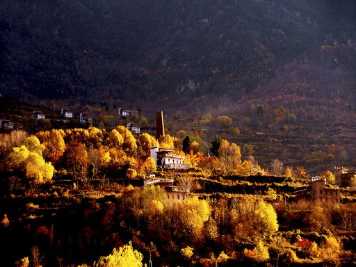 2013年11月,當(dāng)一行影友來到丹巴中路,璀璨的秋色頓時迷住了我們。于是,便有了如下這組影像。