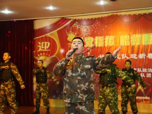 整臺匯演以“我們行進(jìn)在強(qiáng)軍路上”為主題,共分“喜迎新年,官兵情懷,祝福祖國”三個(gè)篇章,晚會融歌舞、小品、相聲、雙簧等表演于一體,結(jié)構(gòu)緊湊、熱情奔放、氣勢恢弘,營造出了昂揚(yáng)振奮、拼搏進(jìn)取的濃厚氛圍,充分展示了支隊(duì)官兵朝氣蓬勃的青春氣息和扎根高原、建功警營的豪情壯志。晚會在器樂合奏《鑼鼓喧天迎新春》拉開帷幕,融入歡慶腰鼓的喜慶元素,和著歡快的節(jié)奏,盡顯支隊(duì)特色文化隊(duì)的藝術(shù)魅力。歌舞表演《當(dāng)兵就是那么帥》刻畫了支隊(duì)官兵時(shí)刻準(zhǔn)備著上一線、打頭陣的戰(zhàn)斗激情;雙簧《快樂的武警官兵》展示了官兵熱愛警營生活、活潑可愛的一面;歌舞《迷彩假面舞》演繹了支隊(duì)官兵扎根高原,忠誠使命做奉獻(xiàn)的壯志豪情;《三句半》詮釋了支隊(duì)官兵牢記強(qiáng)軍目標(biāo),投身強(qiáng)軍實(shí)踐,勇挑重?fù)?dān),沖鋒在前,報(bào)國為民的高尚情懷;詼諧夸張的手法以小品《歌倆好》、啞劇《新兵訓(xùn)練》“兵演兵、兵寫兵”,表達(dá)官兵團(tuán)結(jié)一心,刻苦訓(xùn)練的精神風(fēng)貌,博得了現(xiàn)場觀眾的陣陣掌聲,將晚會推向了一個(gè)又一個(gè)高潮。演出中,各基層中隊(duì)維穩(wěn)駐訓(xùn)分隊(duì)以團(tuán)拜形式向全支隊(duì)官兵送上了新春的祝福。晚會在舞蹈表演《軍之魂》中落下帷幕。