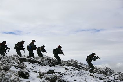連日來,武警四川省總隊第二支隊緊貼反恐維穩(wěn)和搶險救災(zāi)任務(wù)實際,突出陌生地域、復(fù)雜條件和高寒氣候戰(zhàn)斗場景,將特戰(zhàn)隊員拉至海拔4000米以上的野外山地,狠練臨機拉動、高海拔處突、實兵對抗、極限體能、野外生存等課目訓(xùn)練,不斷挑戰(zhàn)特戰(zhàn)隊員戰(zhàn)術(shù)技能、生理極限,錘煉軍人血性和打贏能力。 (于傳濤 攝)