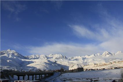 在接下來的路途中,停車休息的瞬間,一個(gè)臨水的村莊出現(xiàn)了。經(jīng)過昨夜的一場(chǎng)大雪,整個(gè)村子出人意料的“安靜”,河對(duì)岸牧民放馬的聲音,那個(gè)到河邊放下水桶汲水的女人取水的動(dòng)靜,似乎都被一場(chǎng)雪過濾了。我即使走到河邊,也難以通過耳朵和眼睛接近這一切。一幅無聲的畫面更貼近一場(chǎng)雪。我放下手中的相機(jī),似乎也在放下一些多余的東西,尊重著一種留白。