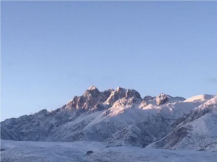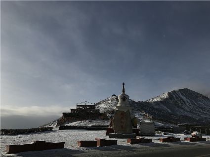 記得,離開甘孜縣城,前往滿金寺的那個(gè)早晨。同行的幾個(gè)人早早用過了早飯,趁著出發(fā)前僅有的一點(diǎn)時(shí)間,站在頂樓視野開闊的餐廳里,盼著太陽沖出來,直接把陽光大把大把地扔在大雪所覆蓋的一切事物上。天公作美,出發(fā)之前,太陽慷慨了一回。于是,一陣噼噼啪啪的快門聲響了起來,應(yīng)和著寥寥餐廳里的某種空白。
