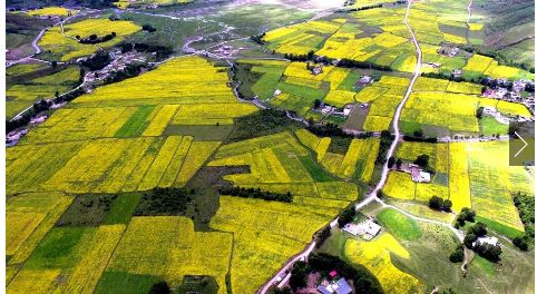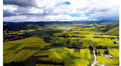 七月的川西高原是一年當(dāng)中最美的季節(jié)。甘孜州雅江縣祝桑鄉(xiāng)境內(nèi)、省道303道孚縣境內(nèi),漫山遍野的油菜花,一朵朵,一簇簇,一片片,仿佛一片金色的海洋。微風(fēng)拂過,綠葉上的菜花隨風(fēng)搖曳,宛若千層波浪涌動(dòng)。藍(lán)天白云下,金色的菜花光彩奪目,花香四溢,蜜蜂、蝴蝶在花朵上翩翩起舞,你追我趕,好一幅世外田園的高原風(fēng)光,猶如一幅巨幅油畫鋪在川西大地上。