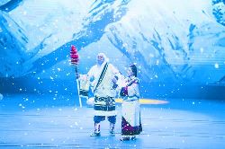《圣潔甘孜·亞丁情》大型歌舞劇取材于稻城亞丁三座雪山分別象征慈悲、智慧、力量的民間傳說(shuō)和民俗文化,根據(jù)當(dāng)?shù)靥赜械某绨葑匀缓捅Wo(hù)環(huán)境意識(shí)的三怙主文化,以圣潔甘孜亞丁的三座雪山為背景,融入傳統(tǒng)頌唱風(fēng)格、勞作場(chǎng)景、傳統(tǒng)藥泥面具與古裝,通過(guò)《豐收》、《打墻歌》、《敬酒歌》、《弦子舞》、《情歌對(duì)唱》、《亞丁三怙主》、《迎金剛》、《雄雞起舞》、《贊金剛》、《見解脫》等具有生活氣息和民俗色彩的歌舞表演,表達(dá)人們對(duì)雪山的感恩和敬畏,展現(xiàn)藏民族的淳樸善良,講述在落實(shí)黨的民族宗教政策和扶貧攻堅(jiān)行動(dòng)中,人們?cè)谘┥较碌臉酚^心態(tài)和幸福生活。