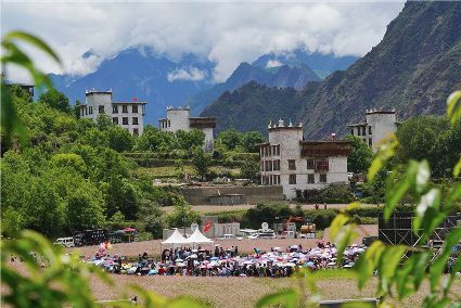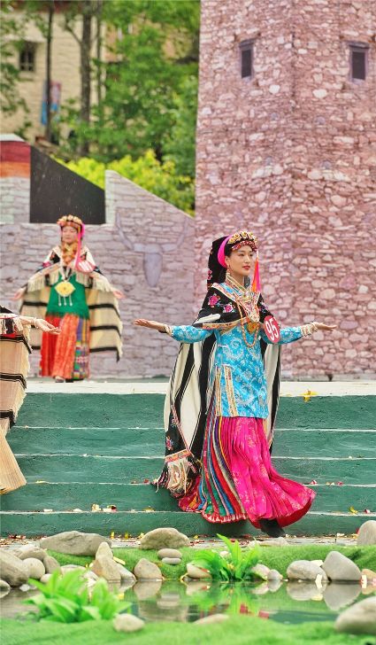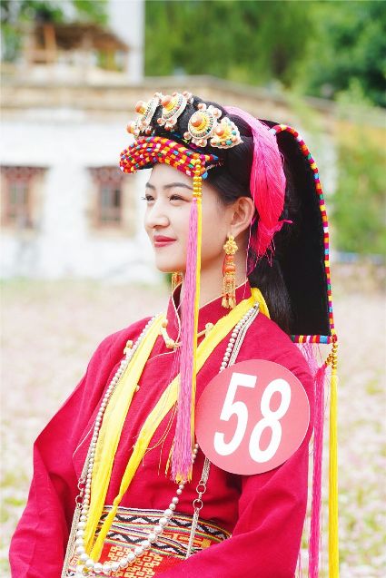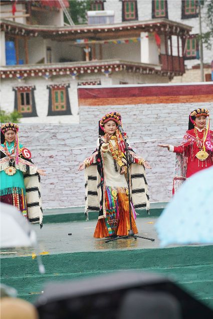 比賽開始不久,現(xiàn)場下起了小雨,但絲毫沒有影響熱烈氣氛。臺上的佳麗們,略施粉黛,穿著承載著嘉絨風(fēng)情文化的民族盛裝,自我介紹,優(yōu)雅展示。臺下,則是鄉(xiāng)民齊聚,熱情高漲。大家紛紛到場,為佳麗們加油助威。據(jù)介紹,丹巴出美女始于漢代的東女國時期。古時每年農(nóng)作物收獲的時節(jié),丹巴各村各寨都要舉行盛大的選美和祭祀活動。