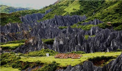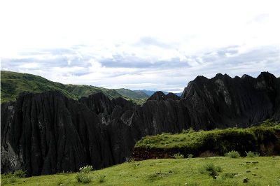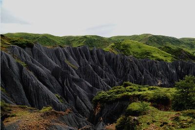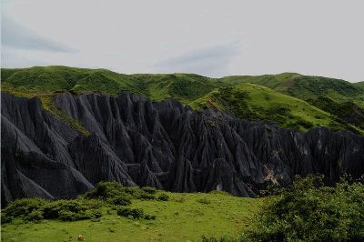墨石公園,是中國唯一高原石林景觀,被譽(yù)為“中國最美景觀大道第八美 ”。受第四紀(jì)新構(gòu)造運(yùn)動(dòng)影響,隨著青藏高原的隆起,鮮水河斷裂帶中的巖石受到擠壓、剪切、破碎、糜化,形成糜棱巖石林。石林含丐鹽,受空氣濕度影響,干燥季節(jié)呈淺灰色、淺藍(lán)色,濕潤季節(jié)呈滄黑色,因此又稱之為變色石林。