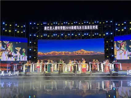 11月21日晚,康巴美人模特秀暨海螺溝冰川溫泉狂歡夜在神湯溫泉中心火熱上演,50名有著“東方美人”美譽(yù)的康巴姑娘和有著“格薩爾王”體魄的康巴漢子伴著原生態(tài)牧歌依次登臺(tái)亮相,率先開(kāi)啟溫泉T臺(tái)服飾展演大幕。隨后,《Fashion Girl》、ViVi時(shí)尚舞團(tuán)、《甘孜踢踏舞》、魔方搖滾樂(lè)團(tuán)、《康定情歌》······中西合璧、形式多樣、精彩紛呈的節(jié)目陸續(xù)上演,“最炫民族風(fēng)”的演出燥熱夢(mèng)幻舞臺(tái),“冰與火”的狂歡夜深受廣大現(xiàn)場(chǎng)觀眾的喜愛(ài)。圖為活動(dòng)現(xiàn)場(chǎng)。