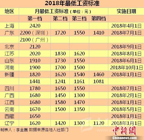 今年以來提高最低工資標(biāo)準(zhǔn)的地區(qū)至少有上海、廣東、北京、江蘇、山東、河南、新疆、四川、江西、廣西、云南、西藏、遼寧等13個省份。