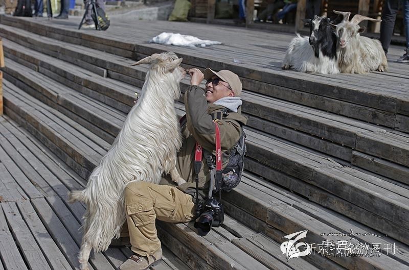 在神山腳下,佛教徒放生的一些山羊和游客親密無(wú)間。山區(qū)氣候多變,一場(chǎng)大雨突如其來(lái)。