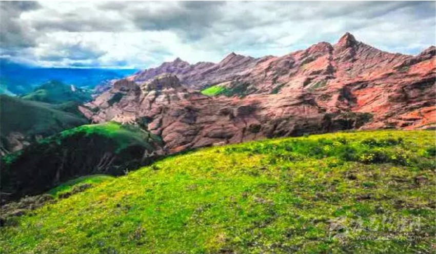 向遠望去,綿延30多公里的紅山基本裸露,寸草不生,山體在烈日下閃耀著刺目的光,與周圍墨綠色的山體形成鮮明的對比。當格薩爾機場建成后,甘孜縣即將成為丹霞地貌主入口,到那時,坐在飛機上你就可以親身體驗這航拍的既視感!