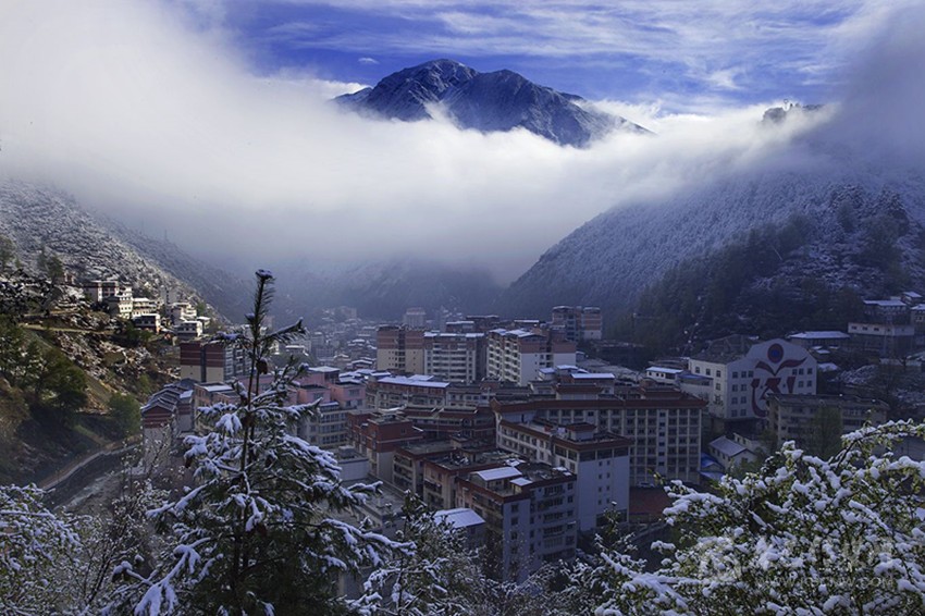 春雪中的康定城。