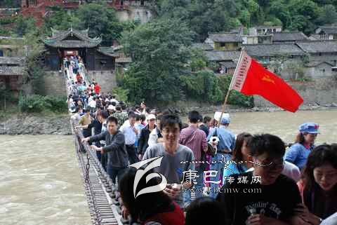 瀘定橋始建于清康熙44年 (1705年),次年五月竣工,康熙御筆題名“瀘定橋”。橋身共由13根鐵鏈組成,其中底鏈九根,扶手四根。橋東西兩端各有橋臺(tái)一座,西端觀音閣下有康熙題寫之《瀘定橋》石碑,橋東有《御制瀘定橋碑記》,瀘定橋是大渡河上第一座穩(wěn)固的大鐵索橋。1935年中國(guó)工農(nóng)紅軍晝夜行軍240里,英勇飛奪瀘定橋,打開了北上抗日的通道,“十三根鐵鏈托起了一個(gè)共和國(guó)”,毛澤東同志為此寫下了“大渡橋橫鐵索寒”的壯麗詩句,瀘定橋自此名揚(yáng)四海,成為中國(guó)紅色第一橋。為紀(jì)念紅軍飛奪瀘定橋這一壯舉和奇跡,于1985年在沙壩建立了“紅軍飛奪瀘定橋紀(jì)念館”和紀(jì)念碑。紅軍飛奪瀘定橋紀(jì)念碑由鄧小平同志題寫碑名,聶榮臻元帥題寫碑文。紅軍飛奪瀘定橋紀(jì)念館收集了紅軍飛奪瀘定橋時(shí)用過的門板、槍、炮、紅軍的旗幟、文件箱、信件證明、標(biāo)語、戰(zhàn)報(bào)、手雷、馬刀等珍貴文物110余件以及177幅歷史照片。瀘定橋是全國(guó)首批重點(diǎn)文物保護(hù)單位,是國(guó)家重點(diǎn)培育的 “紅色旅游區(qū)”、重點(diǎn)組織規(guī)劃的 “紅色旅游精品線路”和重點(diǎn)建設(shè)的 “紅色旅游經(jīng)典景區(qū)”。