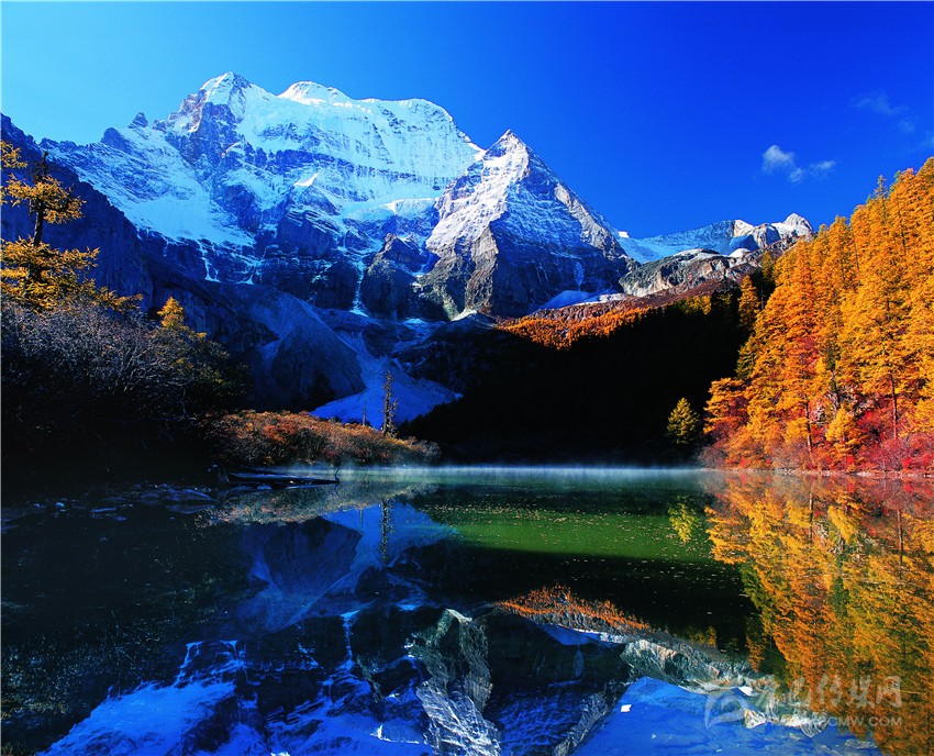藏語意為:“文殊菩薩”,為“三怙主”雪山的南峰,海拔高度為5958米,在佛教中排在“三怙主”雪山之首。文殊菩薩在佛教中是智慧的化身,雪峰像菩薩師利用手中的智慧之語直指蒼穹,冰晶玉潔的央邁勇傲然于天地之間。一九二八年,洛克先生在云南與稻城毗鄰的群山重嶺中,遙望見了央邁勇,被她圣潔,高貴的氣質(zhì)折服,在他的日記中寫到“她(央邁勇)是我見到世界上最美的山峰?!?/p>