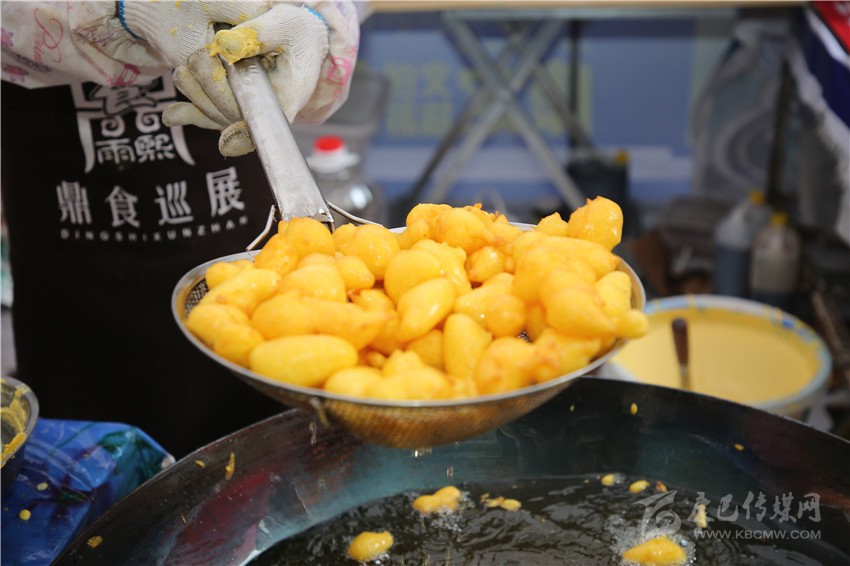 要說美食節(jié)最炫酷的店鋪,那非“印度飛餅”莫屬了。記者穿過層層圍觀的人群,點(diǎn)了一份菠蘿飛餅。只見廚師將捏好的面團(tuán)在案板上揉了幾下,便捏緊面餅一端按順時(shí)針方向轉(zhuǎn)動,手里的面餅越轉(zhuǎn)越大,越轉(zhuǎn)越薄,幾近透明,接著就是放餡料,稍做煎炸,切割裝盤,短短一分鐘內(nèi),一氣呵成。記者接過盤,咬下一口,“喀嚓”一聲,再一口就吃到了菠蘿的清香,外層淺黃松脆,內(nèi)層綿軟白皙,略帶甜味,好一個(gè)外脆內(nèi)嫩?。〗榔饋韺哟呜S富,一軟一脆,口感對比強(qiáng)烈,嚼過之后,齒頰留芳。當(dāng)脆餅撞上菠蘿的清香,就像在夏天突然掉進(jìn)一個(gè)水池,清爽又驚喜?!案杏X就是一件的藝術(shù)品啊!”如此的驚嘆聲從人群中迸發(fā)出來。