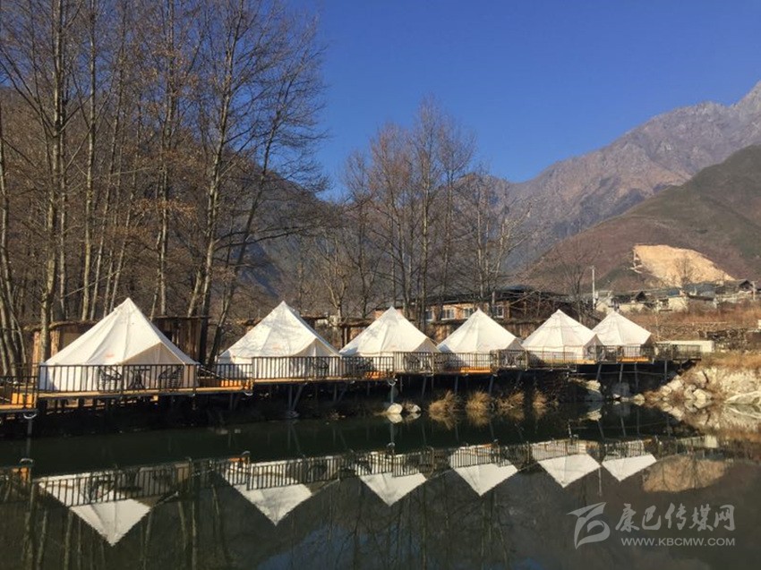 1月3日下午,落日的余暉映襯在對面的雪山頂,映射出一道道五彩的光芒。云谷音樂度假營地一排排整齊的白帳篷在陽光下,也格外耀眼。如今,占地70余畝的云谷音樂基地酒店、帳篷住宿、陽光餐廳等都已打造完畢,音樂廣場、錄音棚等也正在加緊完善中?!跋乱徊剑覀冞€將建設(shè)石屋、樹屋等特色民宿,讓游客來能有不一樣的非凡體驗(yàn)?!币魳坊剡\(yùn)營總監(jiān)付延輝介紹說。