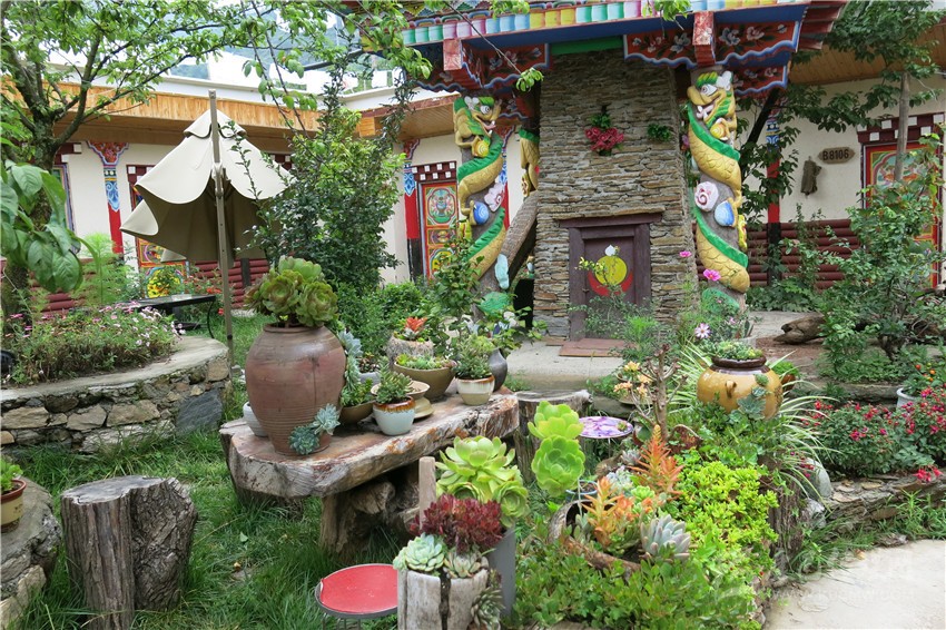在中路,以古井藏語(yǔ)為名的德孜青麥就是一家以田園生活為主題的民宿。民宿內(nèi)古井幽幽,四周景致精心布置。倚靠古井旁、坐在古樹下,品一壺清茶、聊一番人生,好不愜意。主人巴絨說(shuō),這口古井養(yǎng)育了世世代代的中路人,寄托了中路人濃濃的鄉(xiāng)愁。