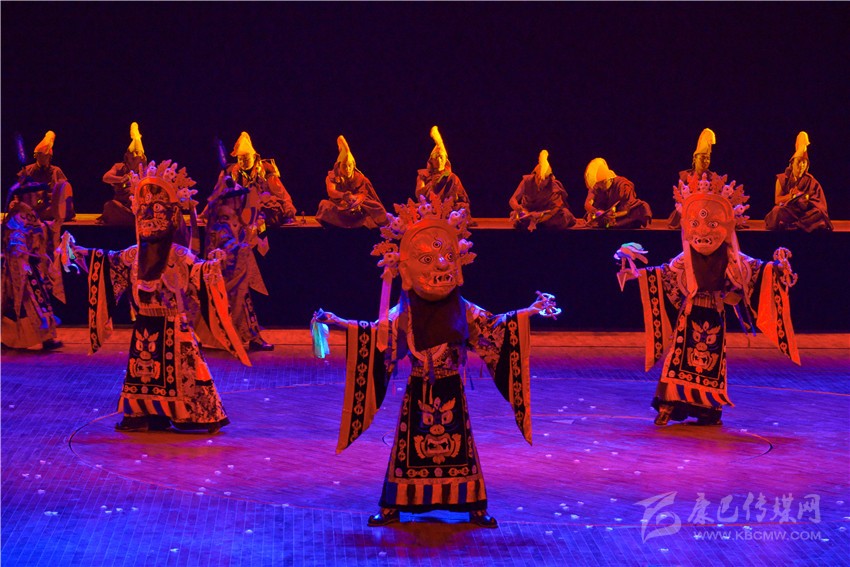 《亞丁?三怙主》歌舞劇不僅從藏族人民日常生產(chǎn)生活中提煉出很多舞蹈文化元素,還對宗教樂舞進行了合理的借鑒。舞劇中用了道孚嘛呢鍋莊、德格卓且、巴塘弦子、爐霍鍋莊、石渠真達鍋莊、丹巴鍋莊、稻城鍋莊等民間舞蹈等元素,加以深化再創(chuàng)作,把原有的民間舞蹈的步伐、舞姿進行夸張性的舞臺處理,并配以適當(dāng)?shù)年犘?,以更加適應(yīng)劇場舞臺的表演;大膽創(chuàng)新引入寺廟樂舞,寺廟樂舞本是藏傳佛教寺廟在宗教節(jié)日表演的祈福性舞蹈,舞劇編創(chuàng)人員合理借用寺廟樂舞的音樂、步伐、面具等,用以表現(xiàn)藏族人民與自然抗?fàn)?,不懼不屈的精神面貌;用泥土筑墻本是藏族人民建造房屋時的一種建筑技藝,在民間演繹成為地方舞種,舞劇編創(chuàng)人員將筑墻的基本步伐和動作加以提煉,編創(chuàng)了一段約兩分鐘的打舞,用夸張的步伐和動作,配以鏗鏘有力的勞動號子,將豪氣灑脫的打墻舞氣氛推向高潮,以表達藏族人民的勤勞、勇敢與豪邁。州委黨校高級講師陶勇說:“《亞丁?三怙主》歌舞劇旨在講解香格里拉之魂,詮釋亞丁三怙主的本意,闡釋三座神山文化包含佛陀的核心教義。亞丁三怙主即仙乃日(觀世音菩薩)、央邁勇(文殊菩薩)、夏諾多吉(金剛手菩薩),它們分別象征慈悲、智慧、力量。這部歌舞劇是解讀藏民族精神文化、弘揚藏民族真善美勇、傳遞康巴文化真諦的民族歌舞劇。歌舞劇通過《序》、《慈明》、《慧明》、《力明》、《尾聲》五個篇章,充分展示藏族傳統(tǒng)文化中熱情、好客、善良、慈悲、勇敢、追求和諧的優(yōu)秀價值觀,將民族文化融入到社會主義核心價值觀,展現(xiàn)了當(dāng)代人民群眾的幸福生活。同時對游客來講不僅豐富了亞丁文化,填補了游人僅僅觀賞雪山不知文化內(nèi)涵的短板,為以后推介甘孜州做了很好的示范?!?/span>