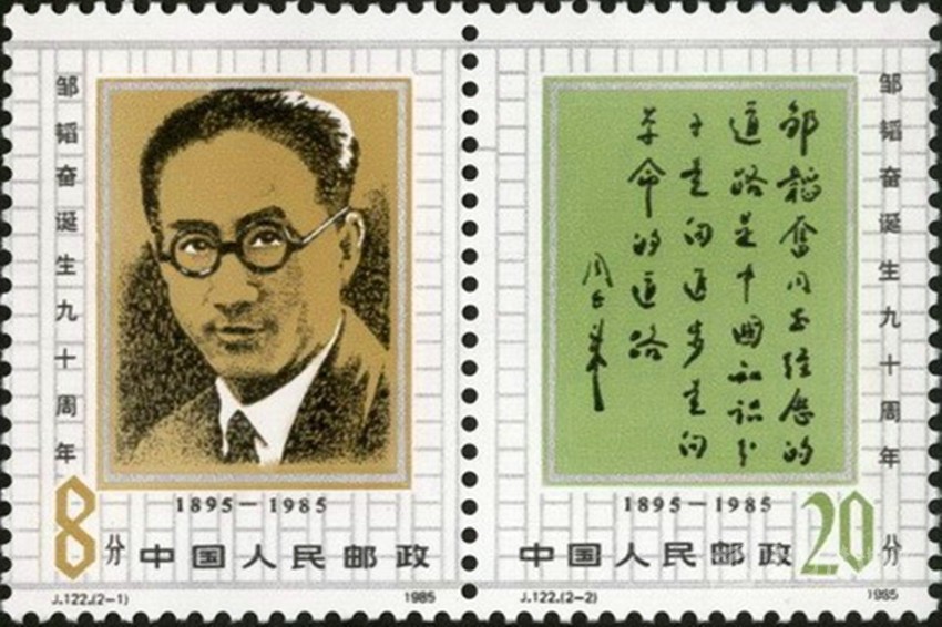 記者是一個承載著光榮與夢想的職業(yè),又是充滿挑戰(zhàn)、需要激情、不怕艱辛、固守責(zé)任的行業(yè)。在我國發(fā)行的人物類郵票中,一些堪稱中國紅色記者的人物曾多次出現(xiàn)在方寸之中,其中,最具代表性的是1985年11月5日,原郵電部發(fā)行的J122《鄒韜奮誕生90周年》紀念郵票。該套郵票共2枚,第一枚為鄒韜奮畫像,第二枚是周恩來的題詞。兩枚郵票采用橫連票設(shè)計,背景為文稿稿紙,主題鮮明,寓意深刻。