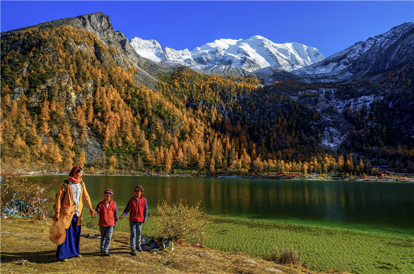 這里所說的跨越性是從時間和空間二維角度來講的。藏傳佛教中講輪回,在這種宗教觀念的影響下,宇宙之輪循環(huán)往復(fù),時間序列中過去、現(xiàn)在、未來永恒循環(huán),時間在空間中的綿延不會影響和區(qū)別生命的自在狀態(tài)。龍仁青小說在時間的跨越中體現(xiàn)藏文化的一脈傳承,《巴桑寺的C大調(diào)》里民國山灣巴桑寺的太陽“依舊蹲坐在西山頂上,有著持重老成的高僧大德一般的莊重和平靜”,《鳥巢》中當(dāng)下曲果小鎮(zhèn)的太陽“就像是一個深諳人生世事,有著豐富閱歷的老人,沉穩(wěn)而又粗然”。民國時期美國植物學(xué)家麥迪到巴桑寺拜謁神樹“拉香秀巴”,采集植物標(biāo)本;時光輪轉(zhuǎn)《綻放》里漢藏雙語寄宿小學(xué)的次洛在查美河岸草原尋找雪蓮和槐花,尋訪阿奶郎洛妮幽深的身世。上世紀(jì)70年代盛夏巴桑寺僧人久美身后姑娘的歌聲,幾十年后查美河岸次洛聽阿奶郎洛妮的吟唱。小說中時間跨度近一個世紀(jì),但藏族人對青藏高原富有山川地貌罕見的地理的情感與瑰麗的審美想象沒有變,對幽密深切滴愛情意蘊的表達和書寫沒有變。