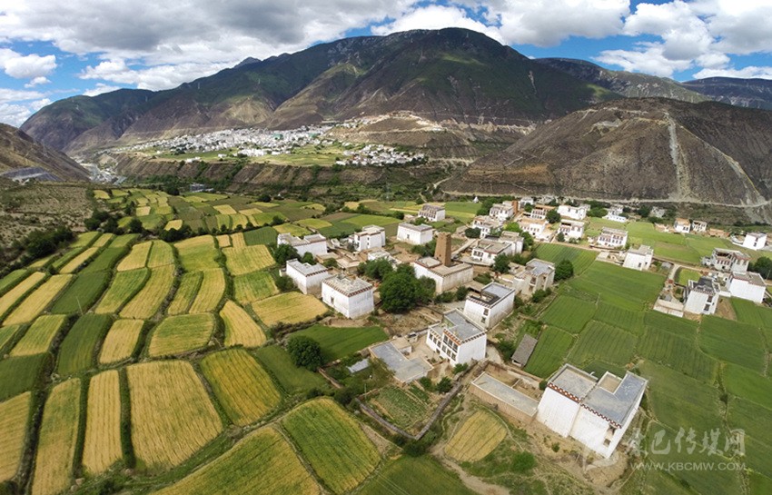 不知汽車又拐了幾道彎,行駛在白霧繚繞的山坡上。突然,我眼前一亮:一幢幢藏式民居灑落在綠樹(shù)叢中,或星羅棋布,或稠密集中,或在高山懸崖下,或在河壩綠蔭中,整個(gè)山寨相依起伏的山勢(shì),連綿迤邐。遠(yuǎn)處的裊裊炊煙伴著漂浮在靈氣的山谷中,清澈的溪流,皚皚的雪峰,遍地的黃花,一幅田園牧歌式的畫(huà)卷展現(xiàn)在我的面前。