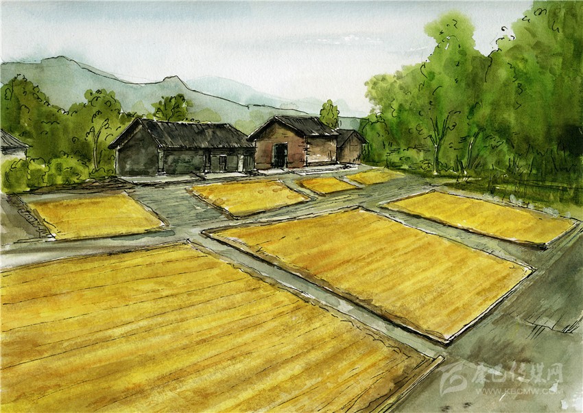 1982年冬,我剛上初中,我們家搬進(jìn)了新建的瓦房,在村莊的南端,此時(shí),大集體解散,分田到戶(hù)。這里視野開(kāi)闊,光線很好。屋前是一條清澈的溪圳,溪岸下是我們家的小魚(yú)塘,推而遠(yuǎn)之,便是稻田、江流和山嶺。屋旁有我家的一塊小禾場(chǎng),毗鄰的,是更多更大的禾場(chǎng),那原本是各生產(chǎn)隊(duì)的。一年里,禾場(chǎng)大多數(shù)時(shí)候是空置的,是村里孩子和少年打陀螺的好地方。每逢夜里放露天電影,寬大的銀幕掛在禾場(chǎng)邊禾屋的墻上,禾場(chǎng)上擺滿了長(zhǎng)凳,或坐或站,滿是人。禾場(chǎng)是晾曬谷物的場(chǎng)所,那時(shí)候,五谷雜糧,村人都愛(ài)種植,不讓土地閑置。初夏割了小麥,挑到禾場(chǎng)打麥子,曬麥子。黃豆、高粱、花麥、穇子、花生,也都是禾場(chǎng)晾曬。到了割早稻割晚稻的那段日子,禾場(chǎng)上就更忙碌了。每天上午,各家從稻田挑來(lái)的稻谷,將一塊塊禾場(chǎng)曬滿。傍晚太陽(yáng)落山,家家戶(hù)戶(hù)又將竹掃帚、刮板、谷籮、風(fēng)車(chē)、撮篩、桿秤諸物一股腦搬了來(lái),收谷,車(chē)谷,過(guò)稱(chēng),挑谷,禾場(chǎng)上一派熱鬧景象。