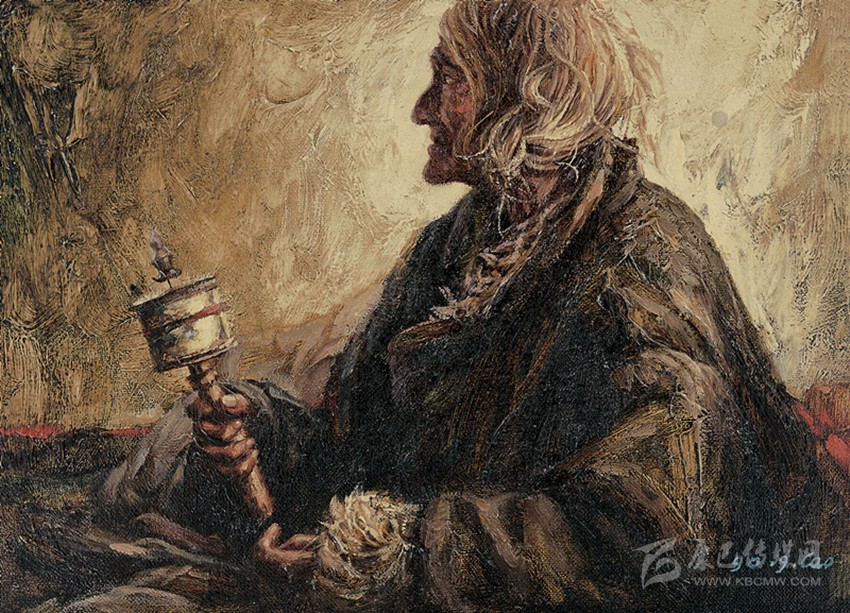 曹勇作品《誦經(jīng)的老人》。