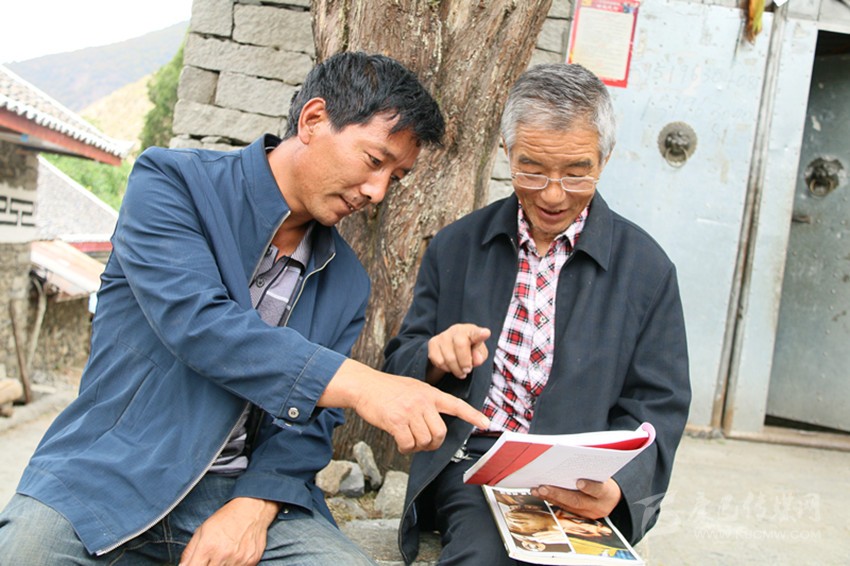 受訪完畢,整理好衣袖,帶上眼鏡,徑直走到“老朋友”身邊,翻開《康巴鄉(xiāng)情拾遺——談天說地龍門陣》,賈熱哲細(xì)細(xì)品味。這時(shí)候,賈家的院壩靜了下來,整個(gè)崩崩沖村也靜了下來。