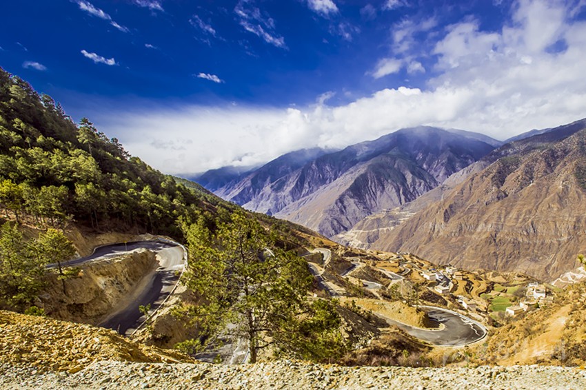 如今,所有鄉(xiāng)村通了硬化路,橫跨在金沙江上的十余座跨江大橋氣貫如虹,天塹變通途。過(guò)去我們下鄉(xiāng)時(shí),從日雨到曲雅貢,只有一條從因都?jí)伪澈蟮陌肷窖?。蒼茫大山,路上幾乎看不見(jiàn)一顆大樹(shù),也找不到一滴水源。從山腰看江畔的因都?jí)危挥袃蓱?hù)人家,幾株綠樹(shù)總令焦渴難耐的我們望“綠”興嘆!下山走到金沙江邊,熾烈陽(yáng)光從河灘上反射,火辣辣照在臉龐和皮膚,熱浪令人窒息,感覺(jué)目的地遙不可及。現(xiàn)今,干部下村完全不需要走路,走路下鄉(xiāng)對(duì)年輕人來(lái)說(shuō)簡(jiǎn)直不可思議。公路像一條飄帶環(huán)繞山間,使散落在峽谷中的村寨愈發(fā)展現(xiàn)出欣欣向榮的新風(fēng)貌。