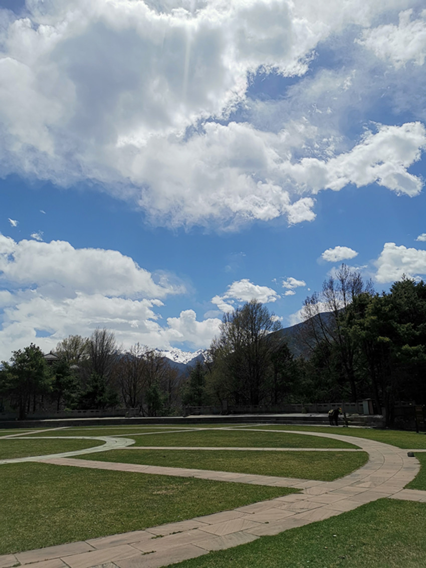 回到家后,我隔窗再望獅子巖,那濃蔭綠樹已遮得嚴(yán)嚴(yán)實(shí)實(shí),根本看不到獅子巖的影子,倒是濃蔭中,隨風(fēng)飄動的彩色經(jīng)幡時隱時現(xiàn)。