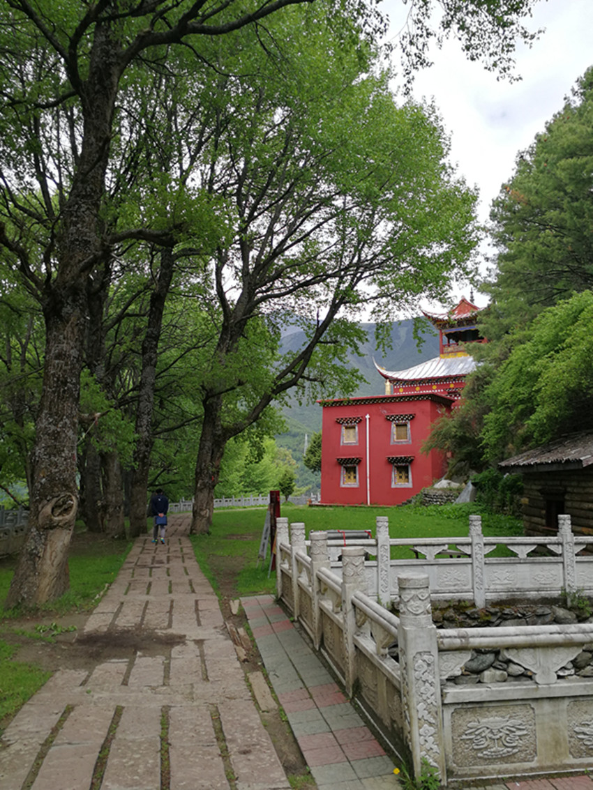 中國民俗有“大年初一不竄門”,這一天,康定人很多都會去寺廟燒香敬佛。前年大年初一,我便去了觀音閣。進(jìn)門處,有專供燒紙錢的地方。再上階梯,有長列的白色佛塔,進(jìn)寺就可點(diǎn)燈朝拜。出了觀音閣,我順道去找獅子巖。公路一側(cè)的堡坎已將原來的小徑斬斷,翻上堡坎,小徑幾乎已沒了蹤跡。再仰頭望,獅子巖已是掩映在濃密的綠樹雜叢間。長在右側(cè)的花椒樹,已不見蹤影。幾株高大的白楊樹遮天蔽日,最大的都長到盆口粗了?!鞍倌陿淠尽?,這無疑還是當(dāng)年那幾棵白楊樹了。我艱難地鉆過荒叢爬到獅子巖腳下,那“祭祀臺”上如過去一樣擺放有貢品,旁邊和樹枝上掛有經(jīng)幡,但周圍仍沒有一絲煙熏火燎過的痕跡。