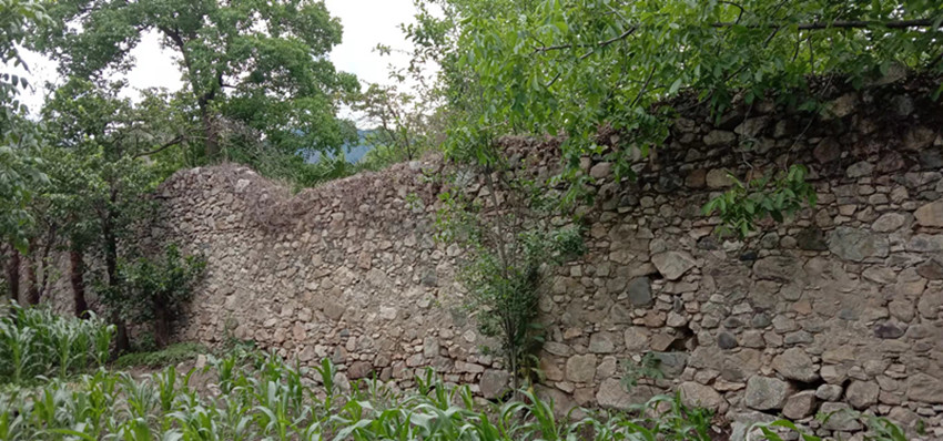 在鄧明前老師的帶領(lǐng)下,記者沿小路往大渡河方向而行,不久即看到一面石頭砌成的圍墻。鄧明前老師說,那即是茶倉遺址了。