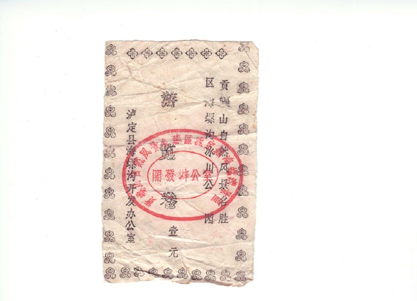 我有心收藏海螺溝旅游開發(fā)建設(shè)三十年來不同時(shí)期、品相各異的門卷、門票數(shù)枚。門卷、門票是游客進(jìn)入景區(qū)的憑證,也是景區(qū)的“臉面”。在我收藏的門卷、門票中有一枚海螺溝景區(qū)第一代門卷。構(gòu)圖簡單,白底黑字的第一代門卷,雖然在歲月中褪去了鮮色,但在方寸之間卻承載著海螺溝景區(qū)建設(shè)最初的時(shí)光和開發(fā)建設(shè)者的記憶,更是瀘定縣三十年前發(fā)展旅游的歷史見證。一晃三十年光陰,至今我對海螺溝景區(qū)第一代門卷的來歷,還記憶猶新。