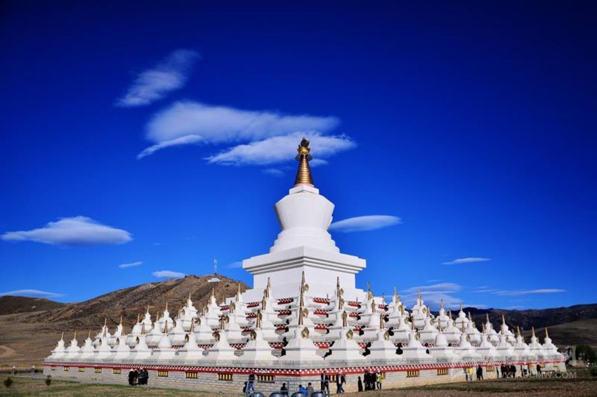 這種尚白的文化心態(tài)在藏地處處可見:屋頂四角及門楣砌白石、要道山口的嘛呢堆上放白石、祭祀山神和箭桿山系上一束雪白的羊毛、供神煨桑時(shí)撒上糌粑,等等。每逢佳節(jié),藏族人們都要將家里的糌粑口袋、酥油桶、酒皿、房頂、要道、山頂?shù)认瞪习籽蛎员砥砀l鼮?zāi)的愿望,也用白羊毛來表示純潔與忠誠(chéng)。(據(jù)《甘孜史話》)