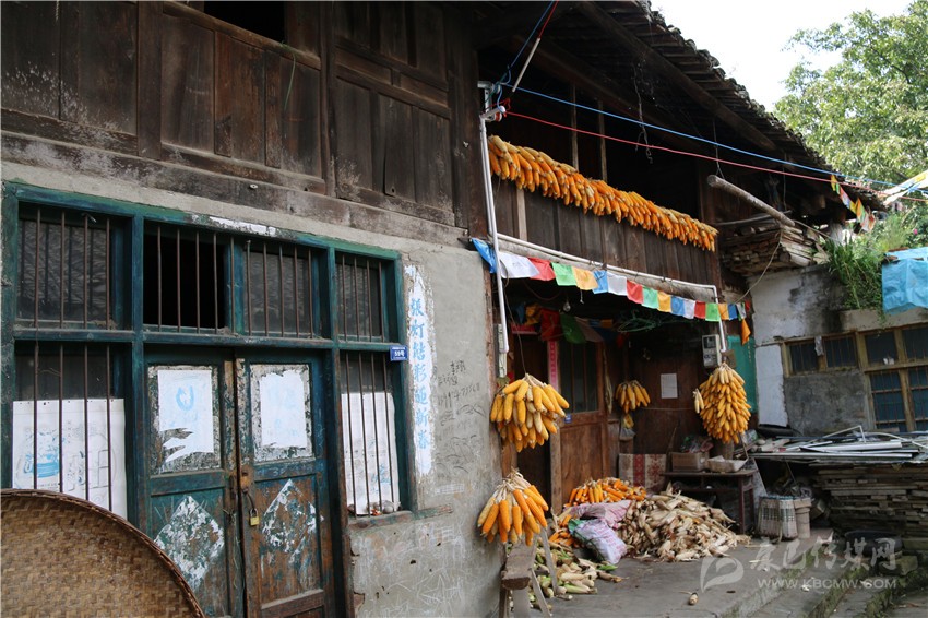 “這算是原生態(tài)的土司房了”,穿過(guò)小道,董老指著一間木板房;“是的,不過(guò)它的危險(xiǎn)系數(shù)很高?!庇嗳A應(yīng)道。近看,門窗屋檐做工精細(xì),散發(fā)著古樸感,但也不難發(fā)現(xiàn)屋身的“補(bǔ)丁”;后退兩步觀望,整個(gè)屋身稍傾斜,是典型的危房。繼續(xù)行走,是泥土和木板結(jié)構(gòu)的房屋,這也是上衙門遺址最后一站。據(jù)董老講述,這里是土司老爺審人的地方,犯人就跪在門坎的大石階上。不過(guò),金黃玉米與鋼筋門窗的出現(xiàn),很難讓人想象土司老爺在該地審案的景象。