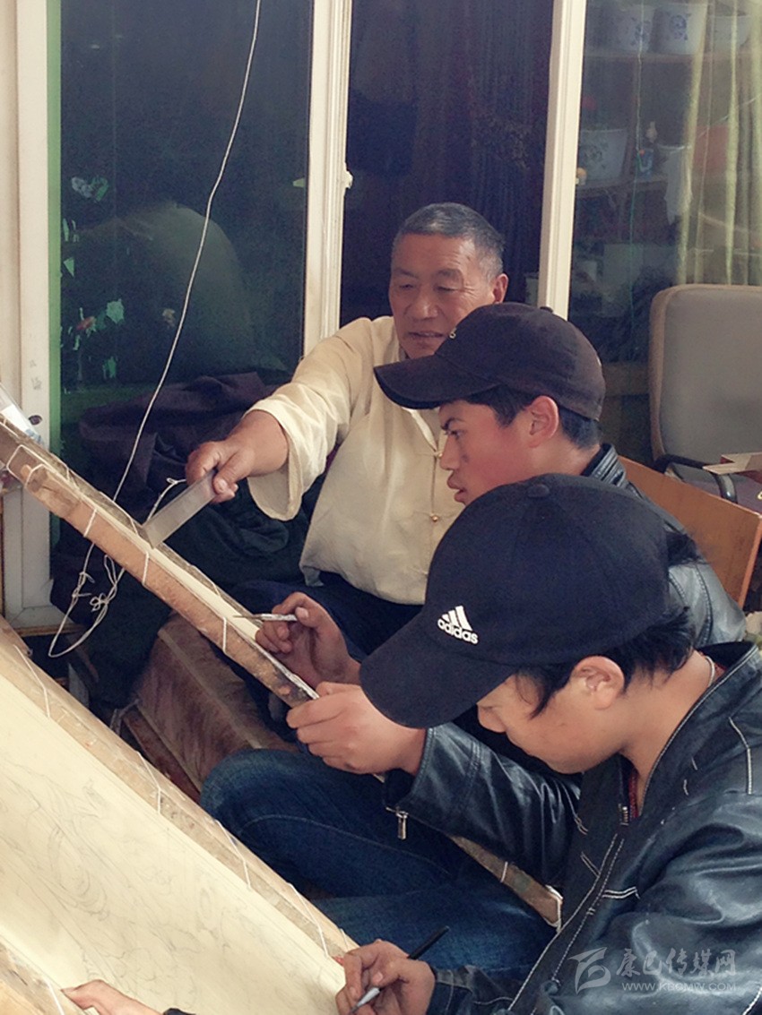 為渡難關(guān),向巴從自身“開(kāi)源”,帶著培訓(xùn)班學(xué)員從事藏房彩繪,既讓他們吃到了東家飯,又讓他們有了收入,累積了生活經(jīng)驗(yàn)。生龍伍登成了精打細(xì)算的管家,詳細(xì)規(guī)劃著各項(xiàng)開(kāi)支,他表示,每天至少有15個(gè)學(xué)生吃飯,在吃飽與吃好之間,先保證前者,不讓學(xué)員餓著肚子學(xué)畫(huà)。生龍則尋求政府相關(guān)部門(mén)幫助?!皶r(shí)代不同了,解決問(wèn)題的辦法也多了?!闭{(diào)整了坐姿,呷絨多吉微笑地看著記者。