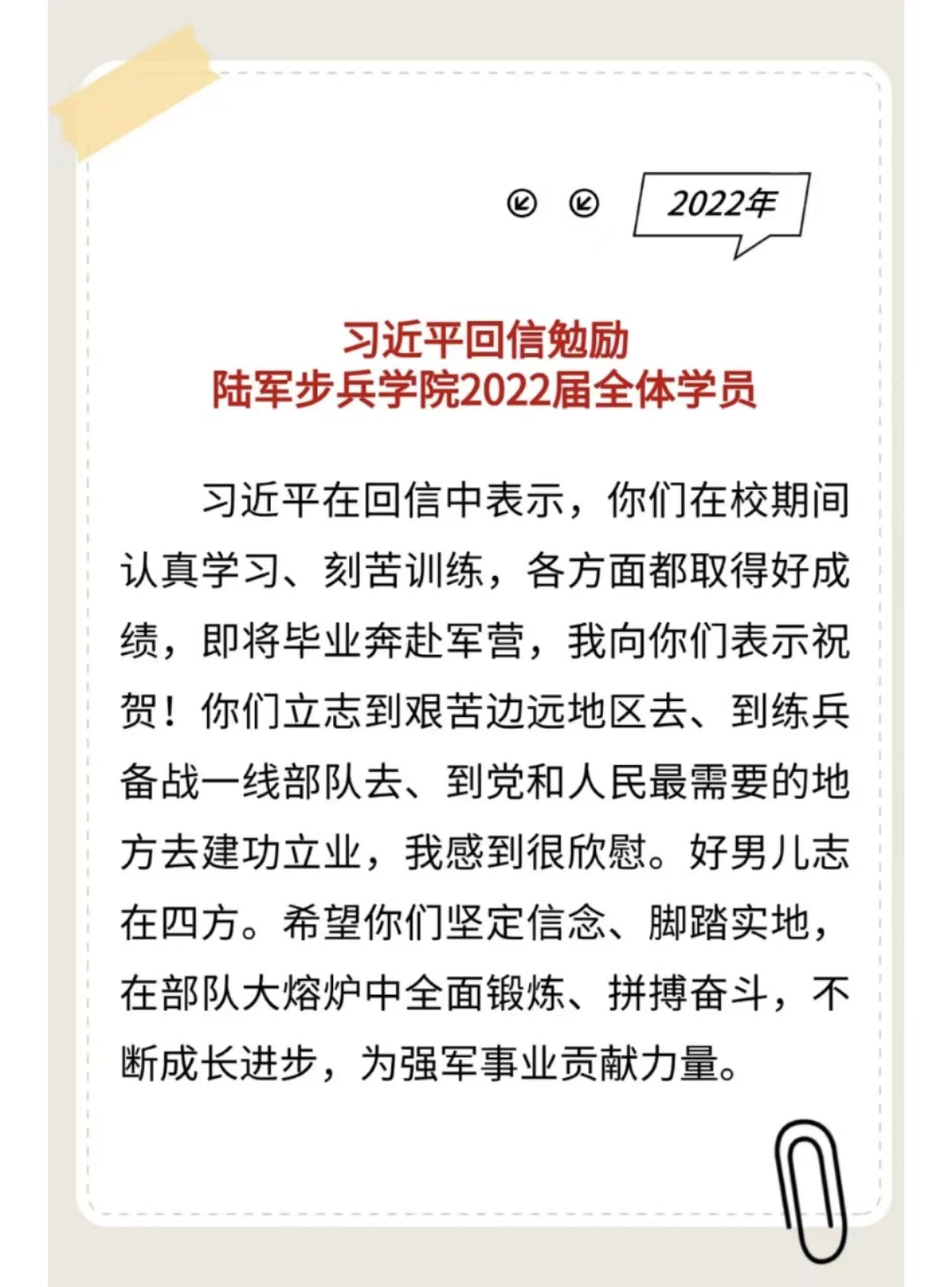 習主席給“強軍精武紅四連”全體官兵回信