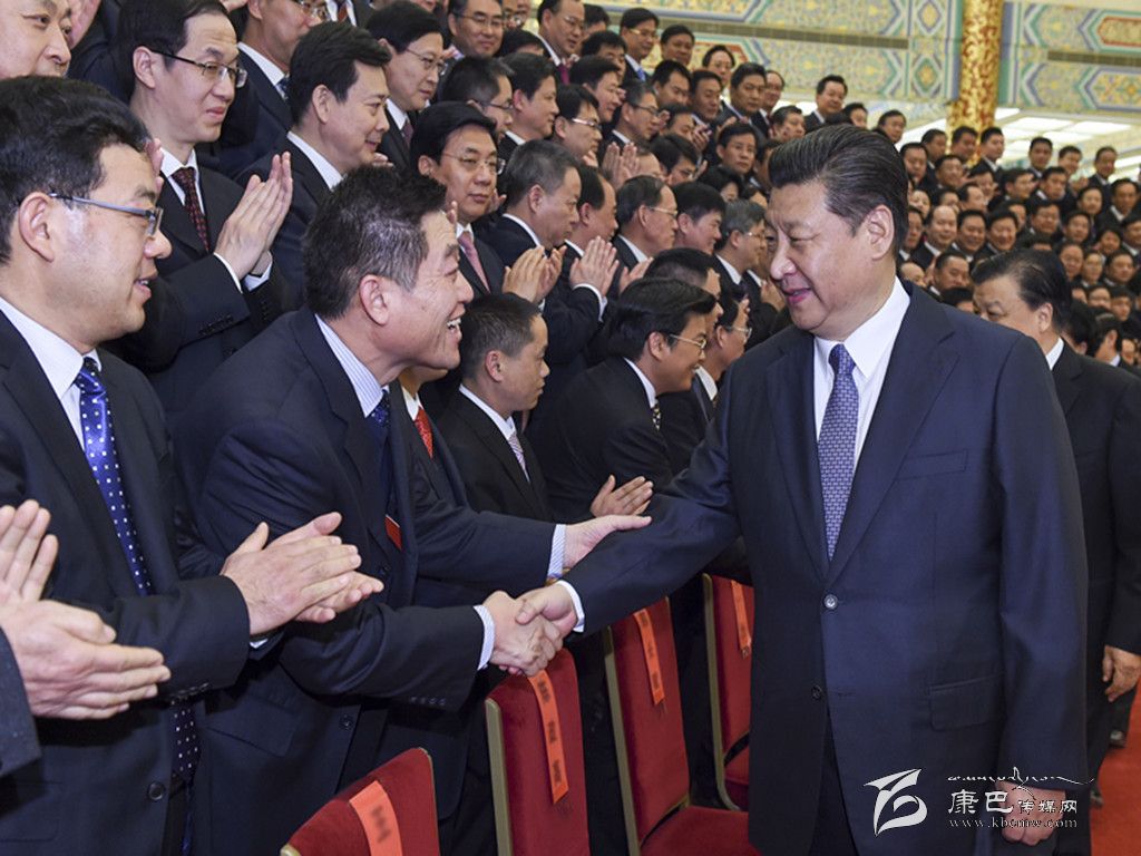 下午3時(shí),習(xí)近平等來到人民大會(huì)堂金色大廳,同代表們親切握手,并合影留念。