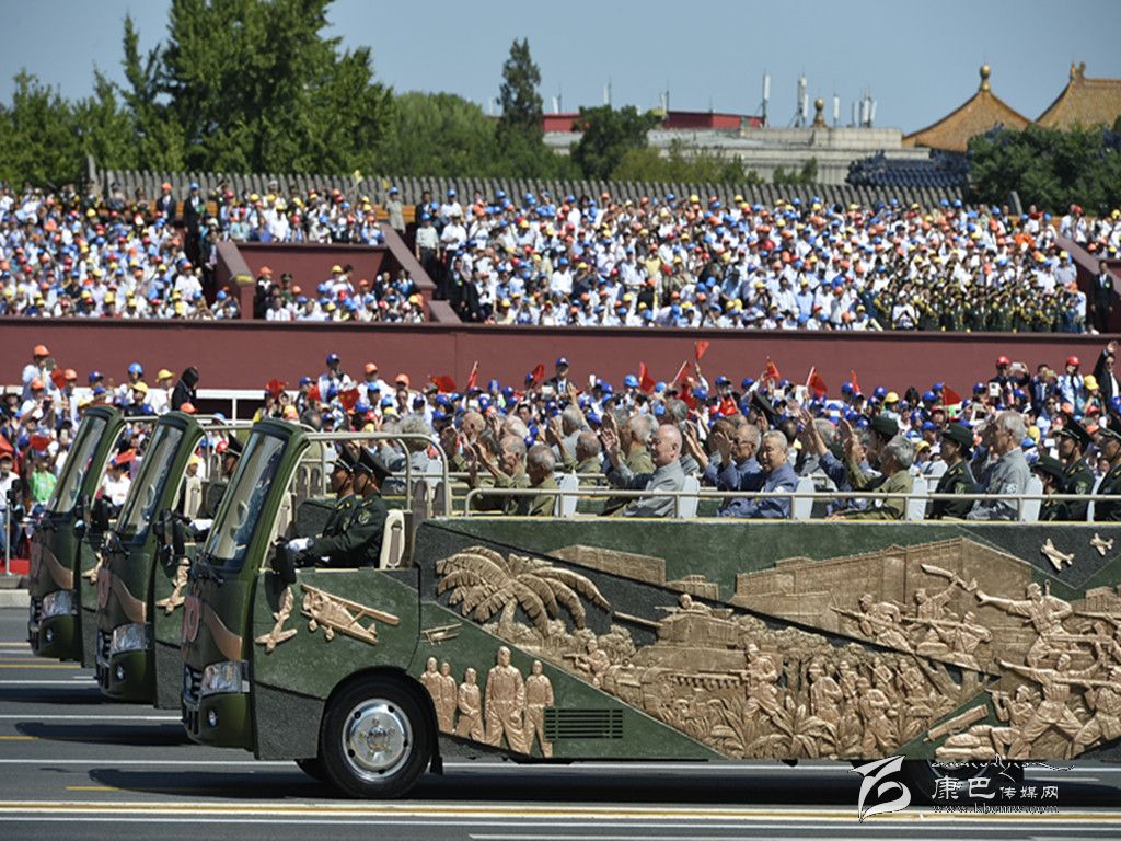 9月3日,中國人民抗日戰(zhàn)爭暨世界反法西斯戰(zhàn)爭勝利70周年紀念大會在北京隆重舉行。這是抗戰(zhàn)老兵乘車方隊通過天安門廣場。    新華社記者李一博攝