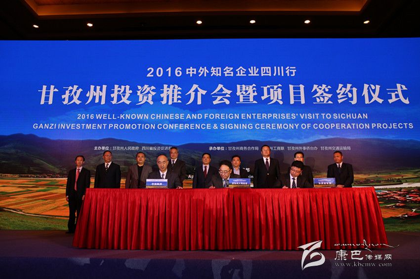 本網(wǎng)訊(記者 楊杰 張濤 文/圖)4月11日,由州政府、四川省投資促進(jìn)局共同主辦的2016中外知名企業(yè)四川行甘孜州投資推介會(huì)暨項(xiàng)目簽約儀式在成都舉行