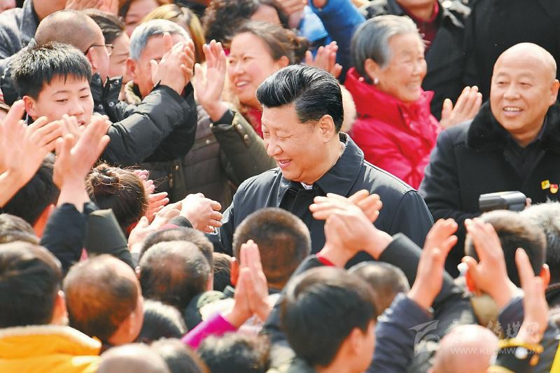 2月12日上午,習(xí)近平總書(shū)記在成都市郫都區(qū)戰(zhàn)旗村考察時(shí)同村民們親切交流。 新華社記者 張鐸 攝(資料圖片)