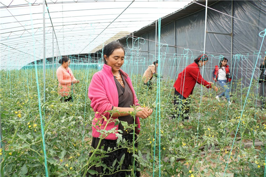 爐霍縣高原現(xiàn)代生態(tài)產(chǎn)業(yè)園勞作的當(dāng)?shù)卮迕瘛?/span>王明陽(yáng) 攝