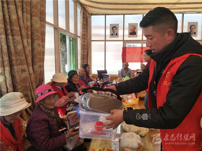 索郎達吉為老人發(fā)放御寒物資。