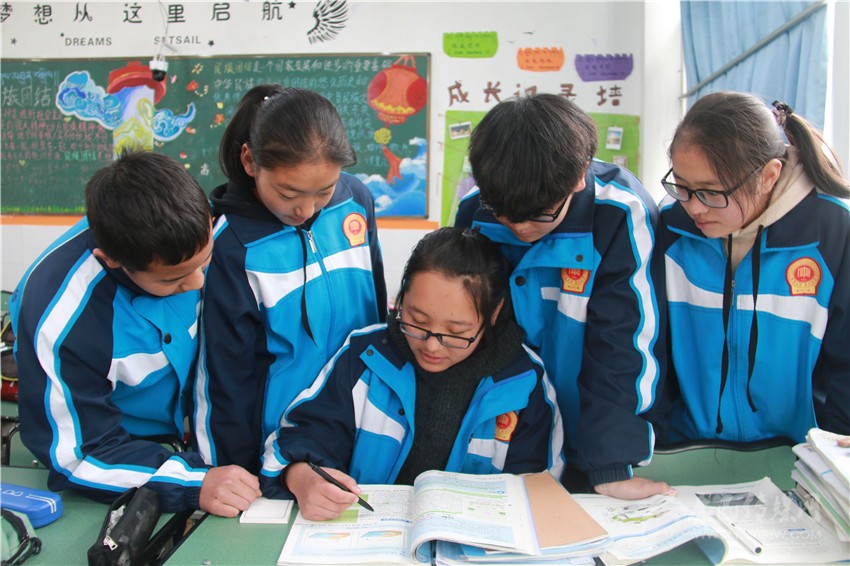 12月29日中午,記者在康定中學看到,一位皮膚黝黑、個子瘦小的女生端坐在教室里,手捧一本地理課外資料,正一臉滿足地向同學們講解著書中的“奧秘”。眼前這個“小老師”名叫擁忠夏姆,是康定中學高一年級8班的學生。