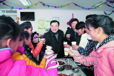 胡昌升說(shuō),希望所有的孩子們好好學(xué)習(xí),一定要聽(tīng)老師的話,讓學(xué)習(xí)更好,讓身體更好;一定要聽(tīng)愛(ài)心爸爸、愛(ài)心***話,讓自己的思想更好,德智體美勞全面發(fā)展,讓我們共同舉杯,祝各位同學(xué)新年有新進(jìn)步,祝大家新年快樂(lè),扎西德勒!