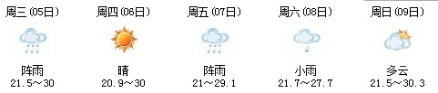 5日開始一直到9日都是多云到晴的天氣,日最高氣溫27℃左右。每天都有陣雨(小雨),考生出行應防山地災害。