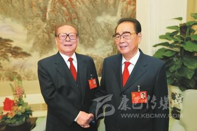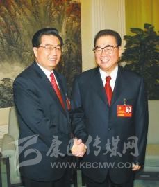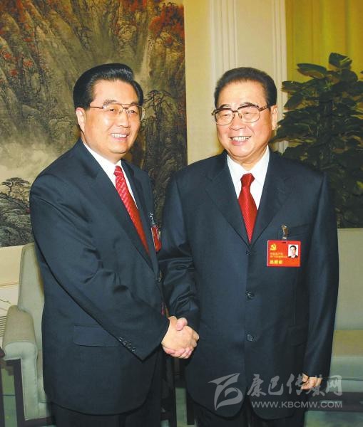 2007年10月21日,在黨的十七大閉幕前,胡錦濤同志同李鵬同志在一起。 新華社發(fā)