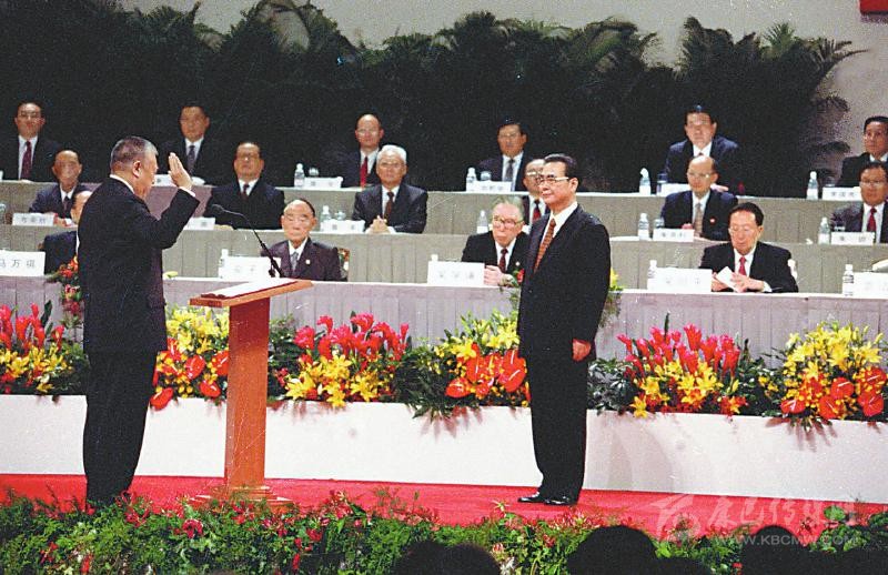 1997年7月1日凌晨,中華人民共和國(guó)香港特別行政區(qū)成立暨特區(qū)政府宣誓就職儀式在香港會(huì)議展覽中心新翼七樓隆重舉行。香港特區(qū)首任行政長(zhǎng)官董建華宣誓就職,李鵬同志監(jiān)誓。 新華社記者 劉建國(guó) 攝